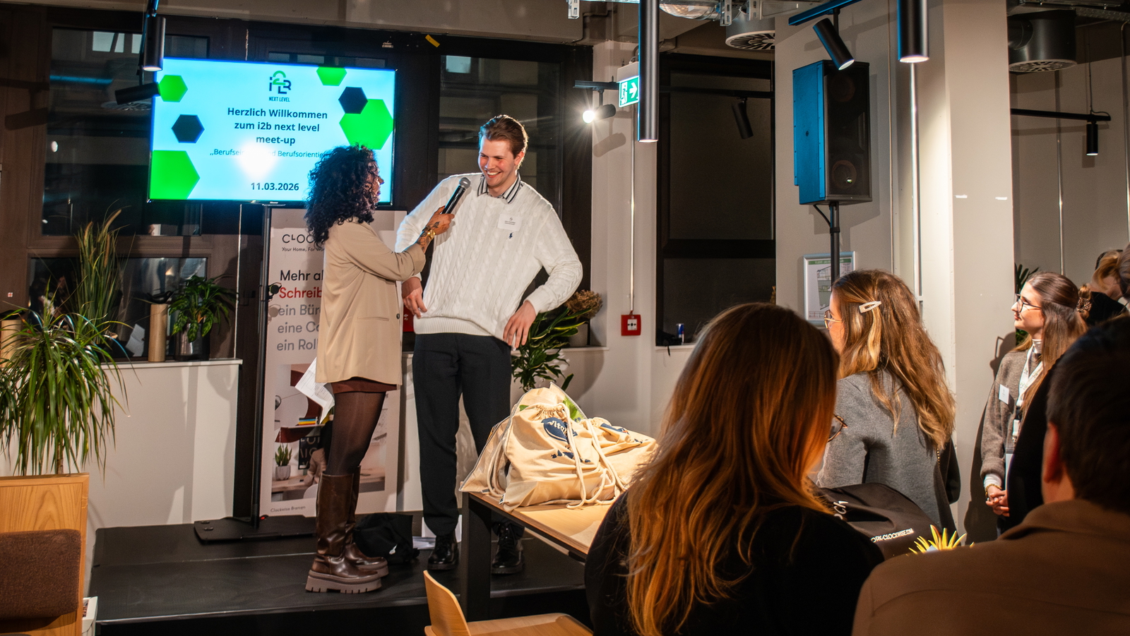 Mehr als 120 Gäste, zahlreiche neue Kontakte und intensive Gespräche: Das jüngste i2b next level-Event, das gemeinsam mit dem Career Camp der Universität Bremen im Clockwise Offices Bremen stattfand, zeigte einmal mehr die Dynamik des Netzwerks.*